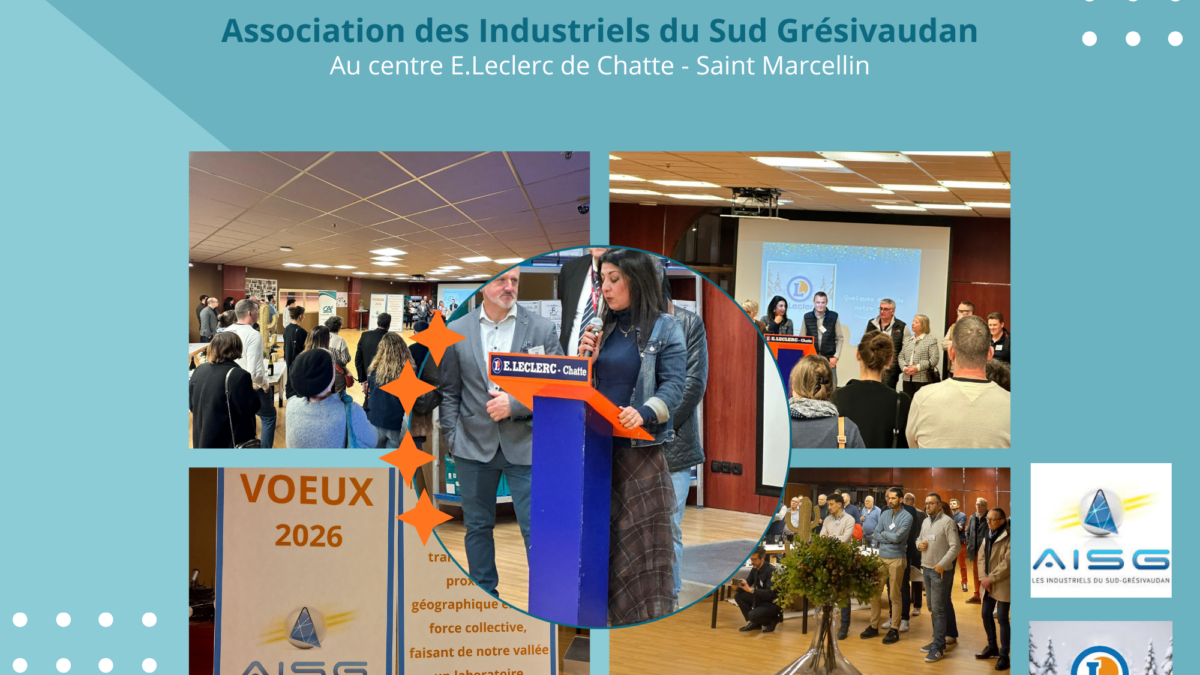 L’Association des Industriels du Sud Grésivaudan (AISG) a réuni ses adhérents, partenaires et acteurs du territoire à l’occasion de sa cérémonie des vœux 2026, accueillie par le Centre E.Leclerc de Chatte – Saint-Marcellin, que l’AISG remercie chaleureusement pour son hospitalité et la qualité de l’accueil réservé.